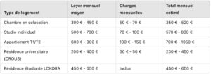 Ces chiffres sont basés sur des moyennes selon un comparatif sur plusieurs offreurs de logements étudiants.