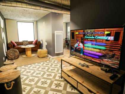 Dans une décoration résolument moderne alliant tuyaux d’origines, couleurs tendres et matériaux bruts, les 250m² d’espaces communs sont propices aux échanges et à la convivialité.
