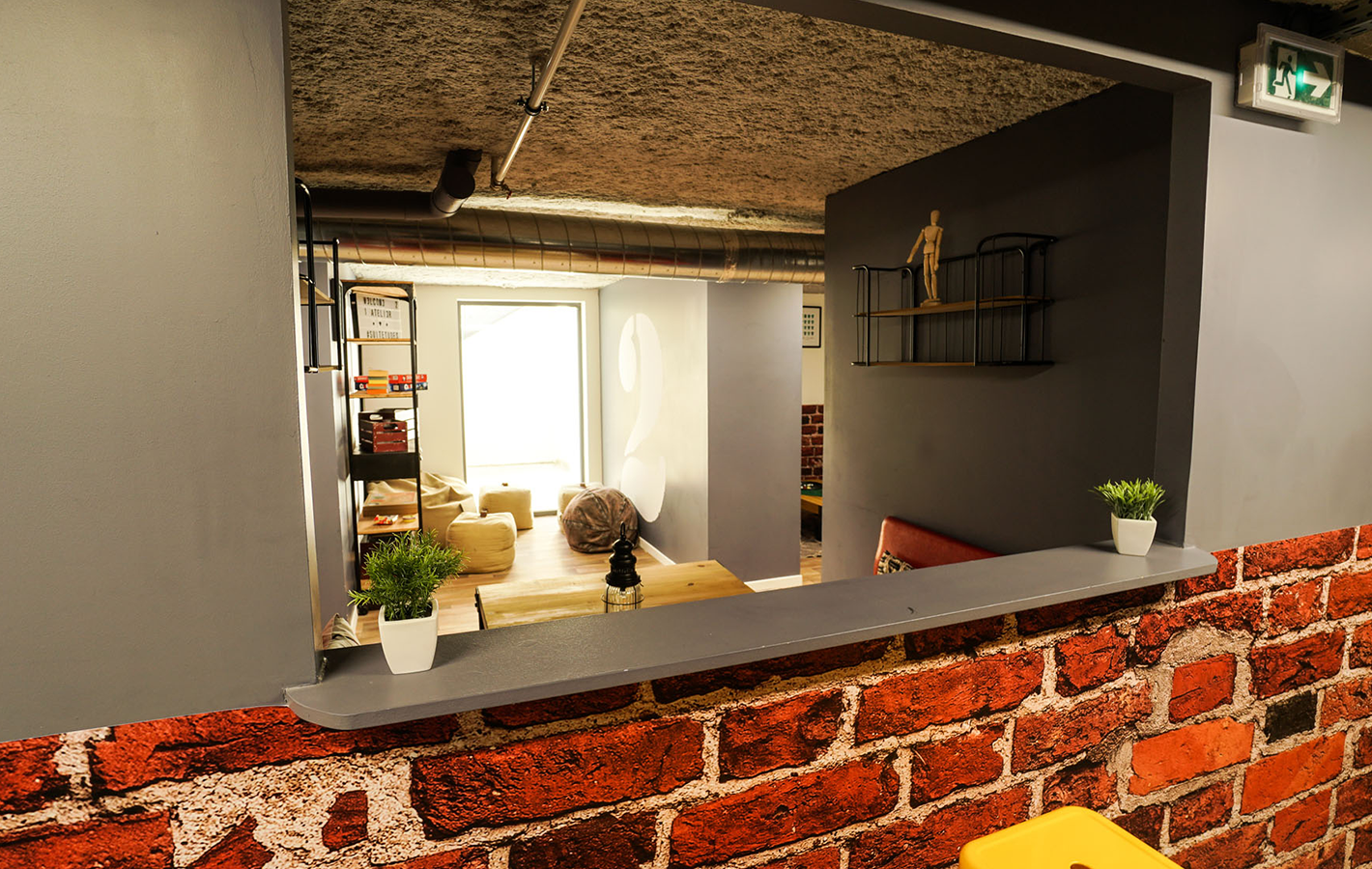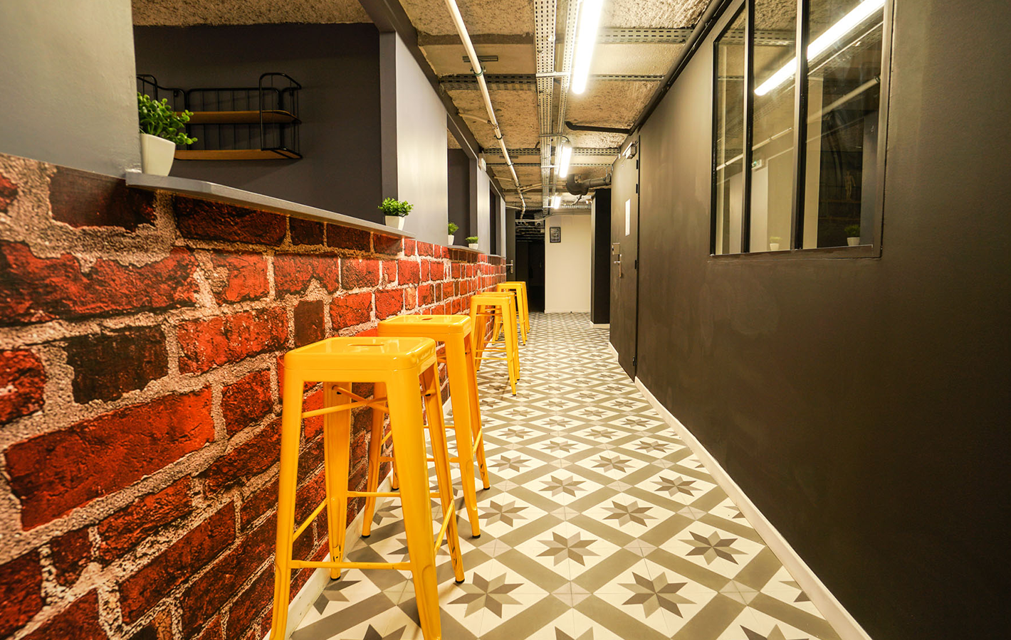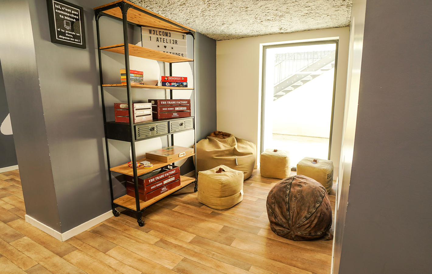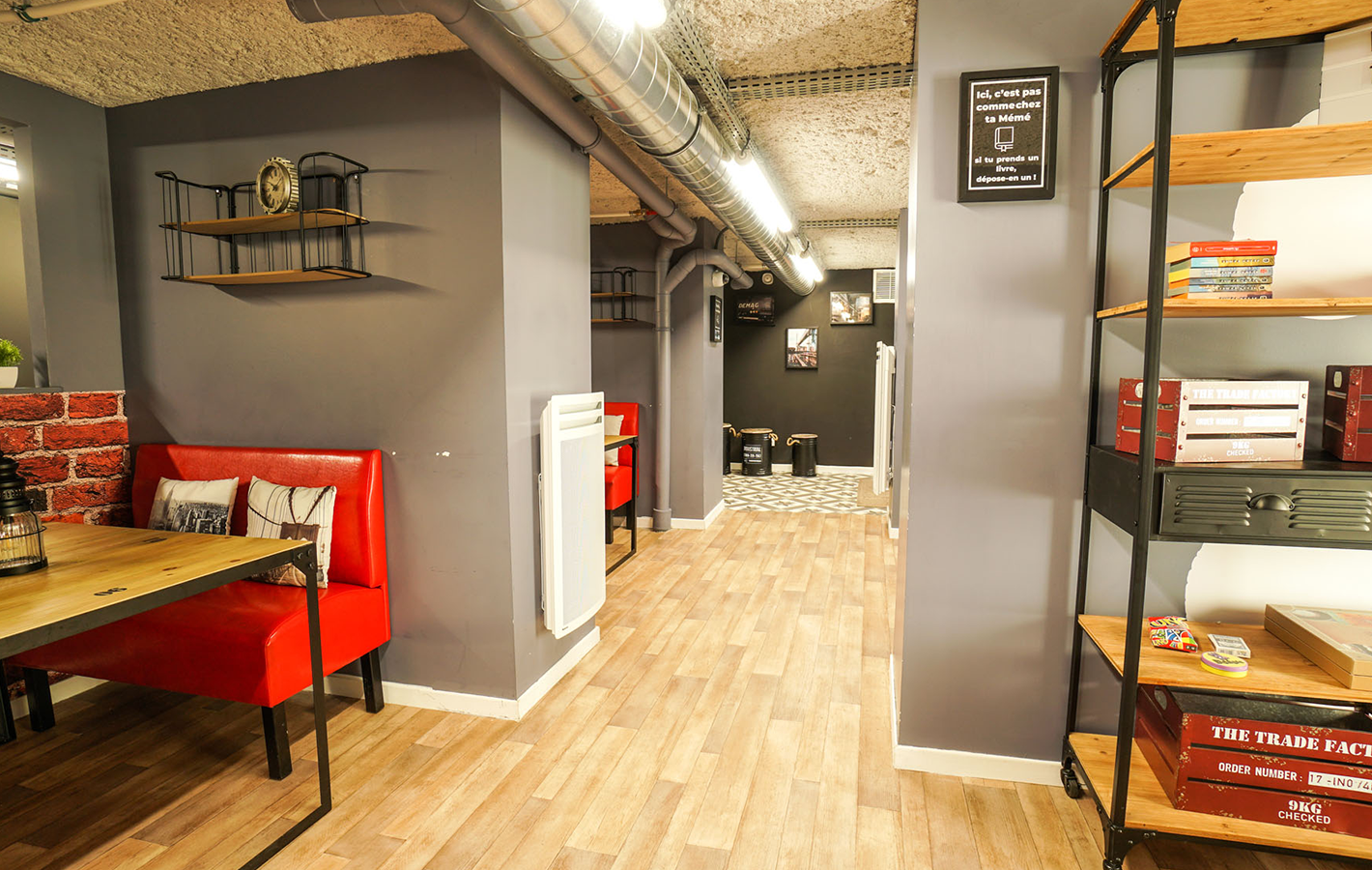 Dans une décoration résolument moderne alliant tuyaux d’origines, couleurs tendres et matériaux bruts, les 250m² d’espaces communs sont propices aux échanges et à la convivialité.